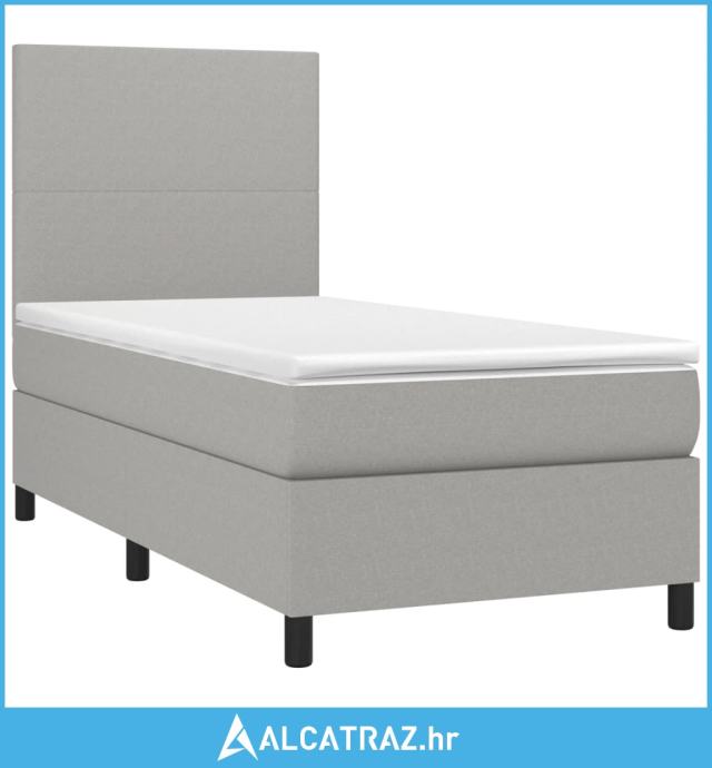 Okvir kreveta s oprugama i madrac svjetlosivi 90x200cm tkanina - NOVO