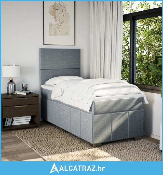 Okvir kreveta s oprugama i madrac svjetlosivi 90x200cm tkanina - NOVO