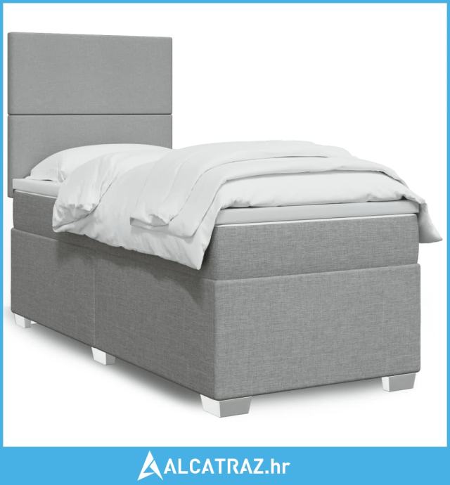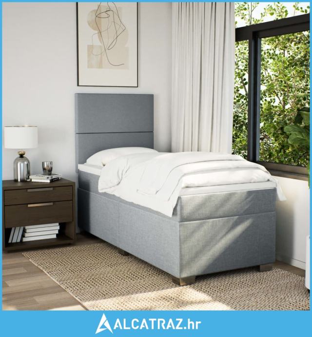 Okvir kreveta s oprugama i madrac svjetlosivi 90x200cm tkanina - NOVO