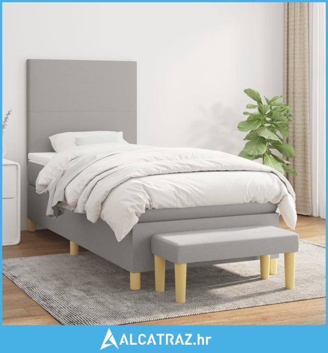 Okvir kreveta s oprugama i madrac svjetlosivi 90x200cm tkanina - NOVO