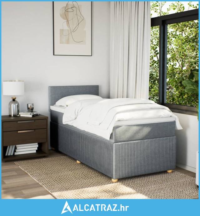 Okvir kreveta s oprugama i madrac svjetlosivi 90x200cm tkanina - NOVO