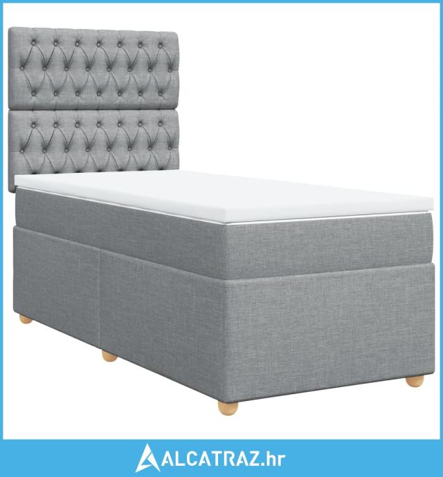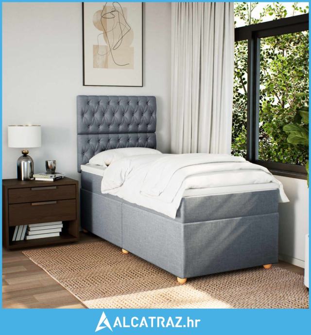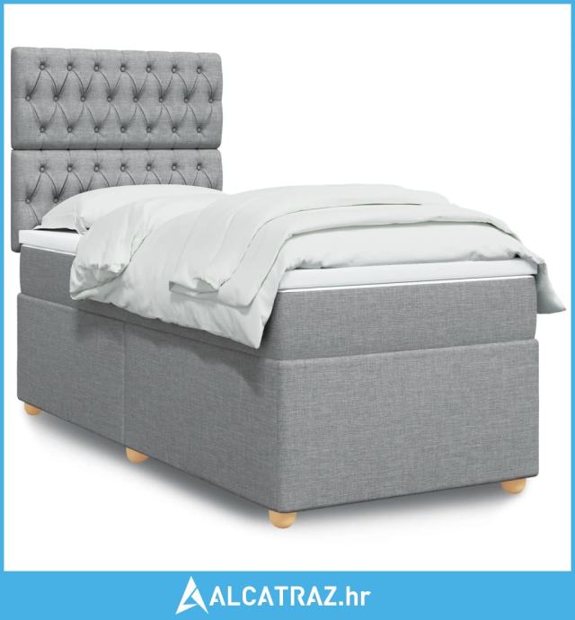 Okvir kreveta s oprugama i madrac svjetlosivi 90x200cm tkanina - NOVO