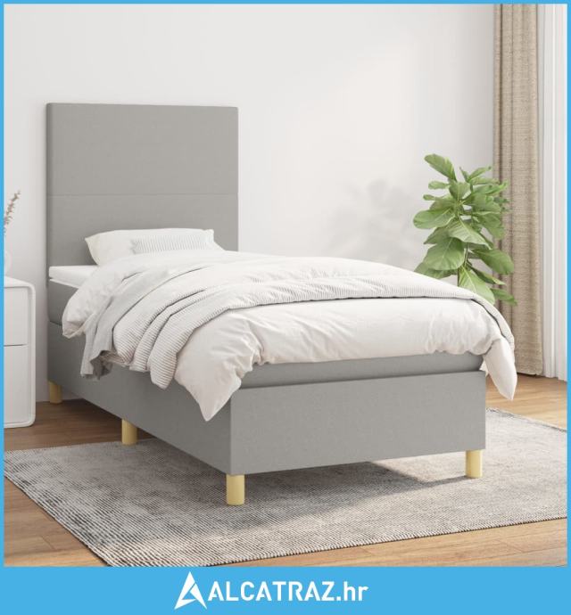 Okvir kreveta s oprugama i madrac svjetlosivi 90x200cm tkanina - NOVO