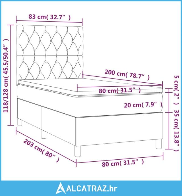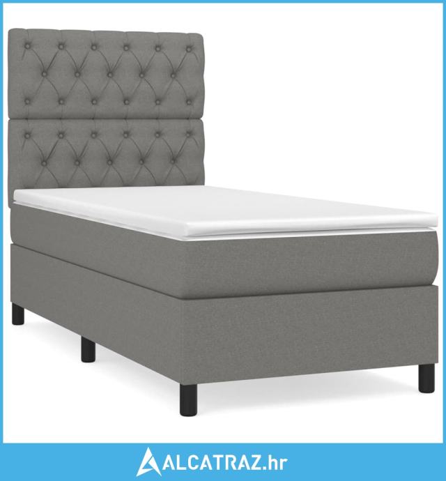 Okvir kreveta s oprugama i madrac tamnosivi 80x200cm od tkanine - NOVO