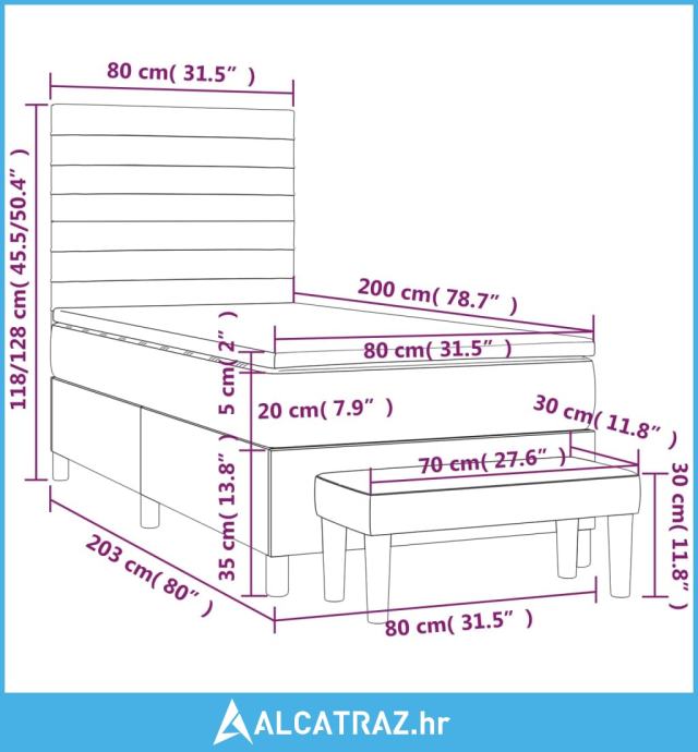 Okvir kreveta s oprugama i madrac tamnosivi 80x200cm od tkanine - NOVO
