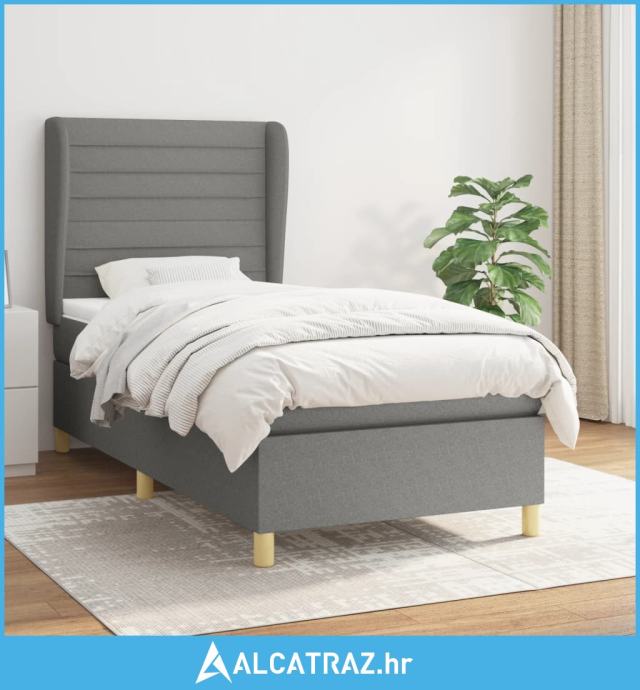 Okvir kreveta s oprugama i madrac tamnosivi 80x200cm od tkanine - NOVO