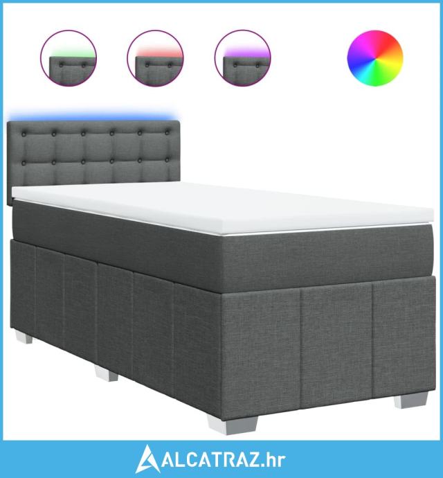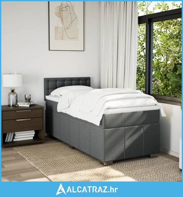 Okvir kreveta s oprugama i madrac tamnosivi 80x200cm od tkanine - NOVO