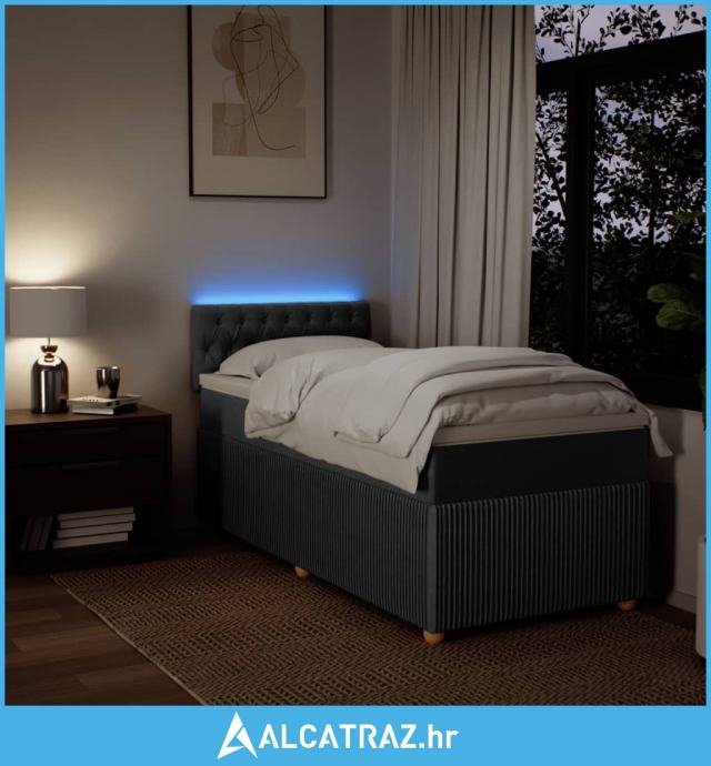 Okvir kreveta s oprugama i madrac tamnosivi 80x200cm od tkanine - NOVO