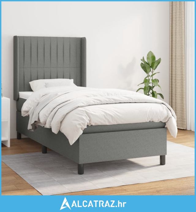 Okvir kreveta s oprugama i madrac tamnosivi 80x200cm od tkanine - NOVO