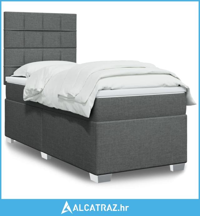 Okvir kreveta s oprugama i madrac tamnosivi 80x200cm od tkanine - NOVO