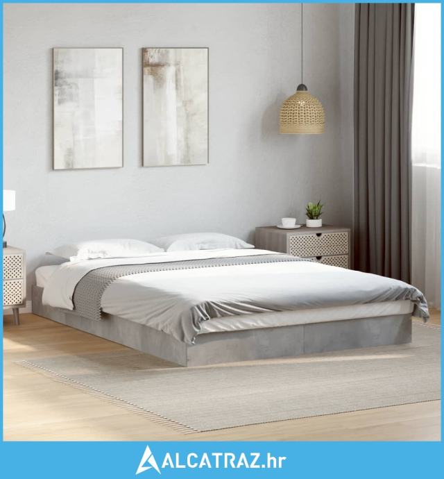 Okvir kreveta siva boja betona 140x200 cm od konstruiranog drva - NOVO