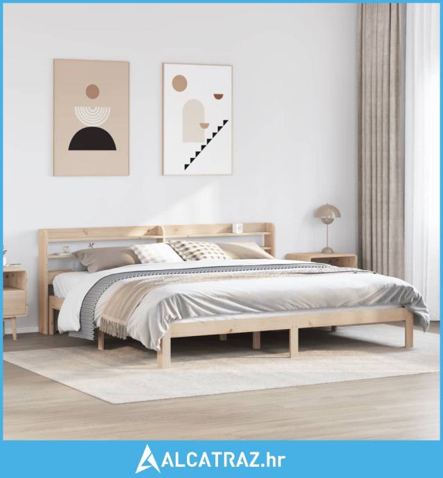 Okvir kreveta s uzglavljem 200 x 200 cm od masivne borovine - NOVO