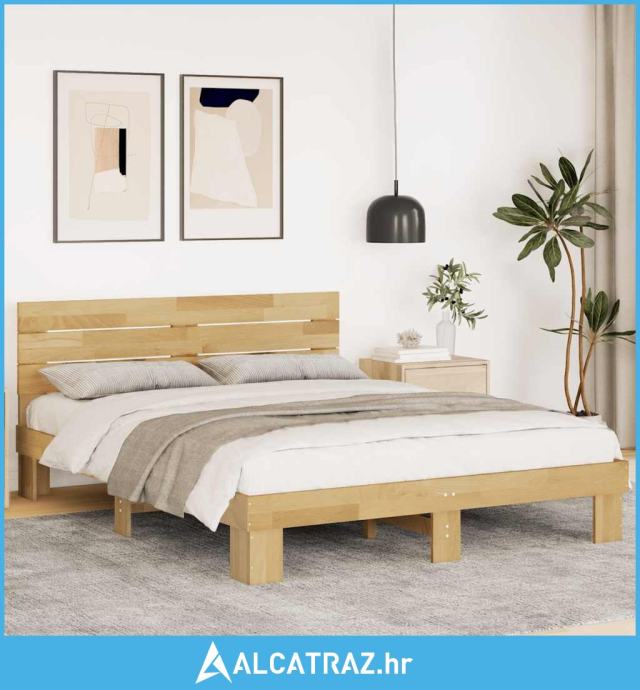 Okvir kreveta uzglavljem bez madraca 140x190 cm puno drvo hrast - NOVO