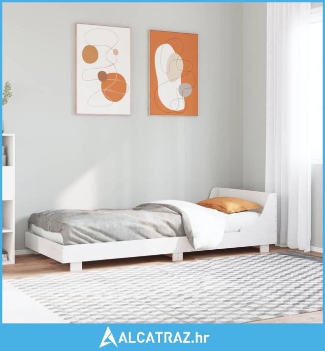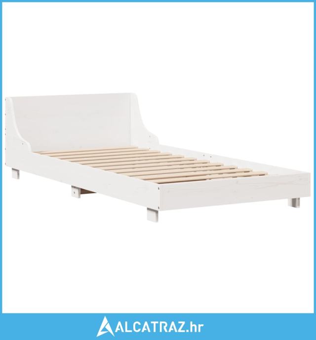 Okvir kreveta s uzglavljem bijeli 100x200cm od masivne borovine - NOVO