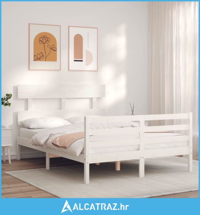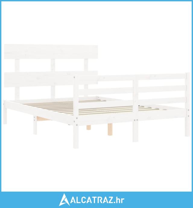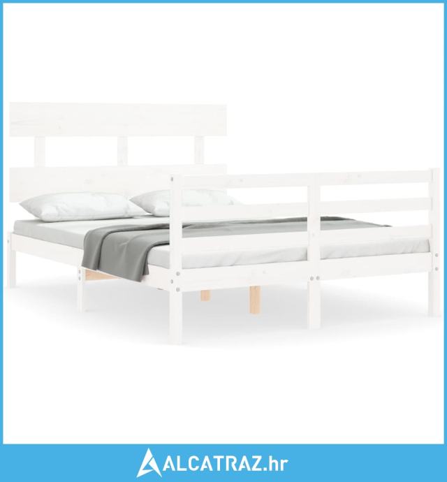 Okvir kreveta s uzglavljem bijeli 120 x 200 cm od masivnog drva - NOVO