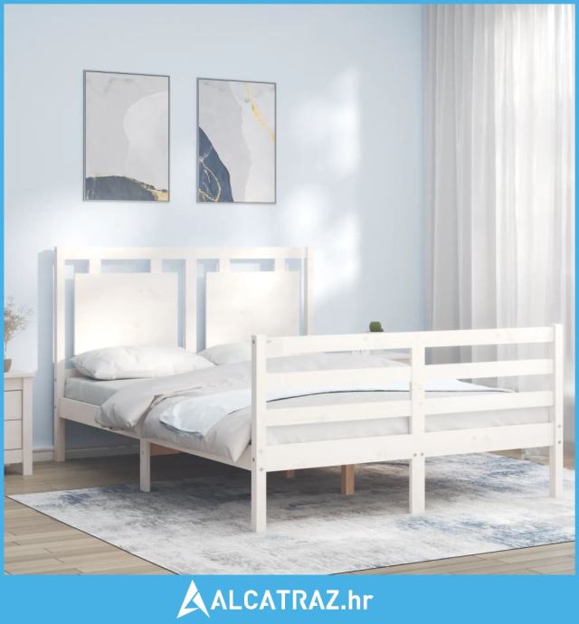 Okvir kreveta s uzglavljem bijeli 120 x 200 cm od masivnog drva - NOVO