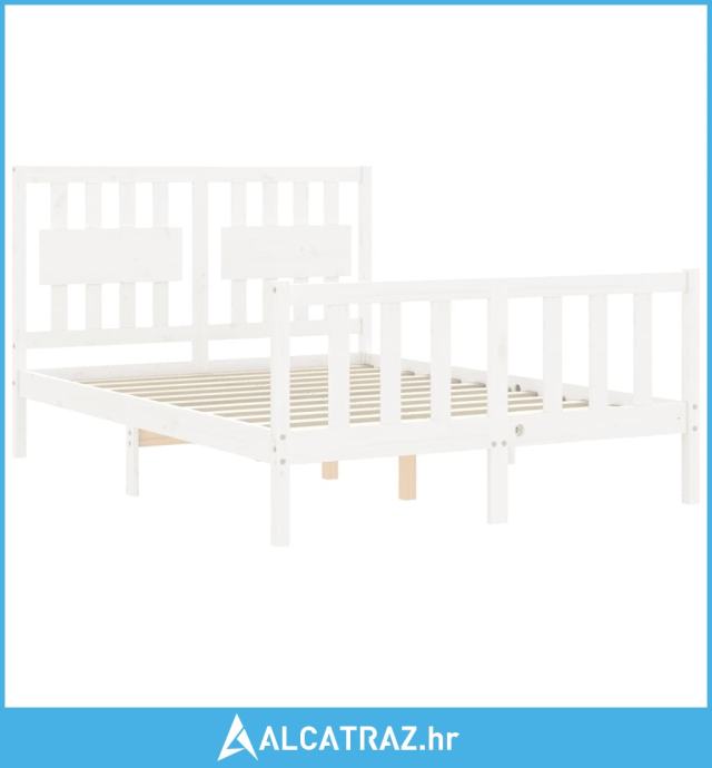 Okvir kreveta s uzglavljem bijeli 140 x 190 cm od masivnog drva - NOVO