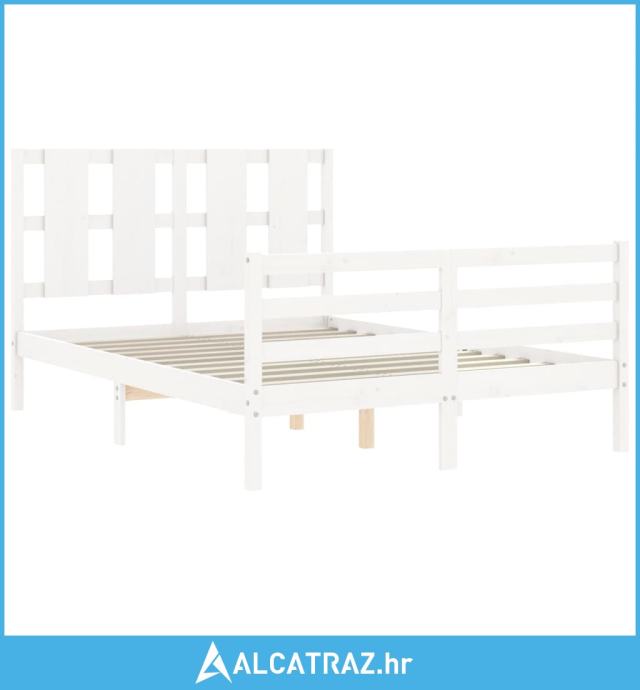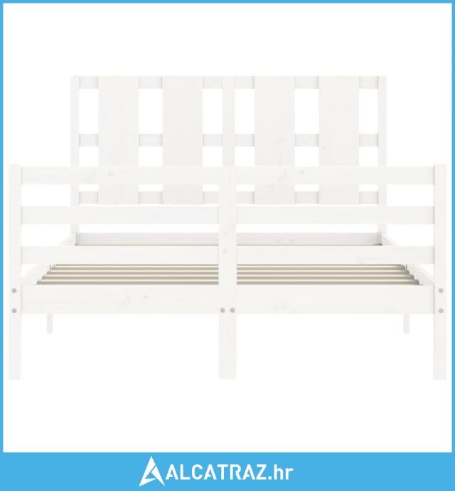 Okvir kreveta s uzglavljem bijeli 140 x 190 cm od masivnog drva - NOVO