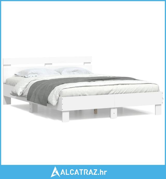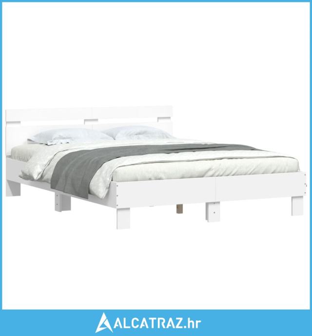 Okvir kreveta s uzglavljem bijeli 140x190 cm konstruiranog drva - NOVO
