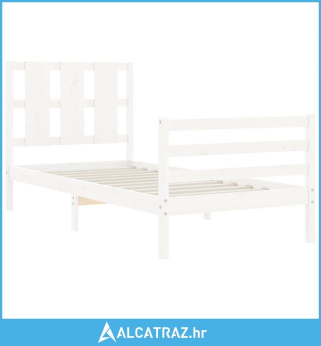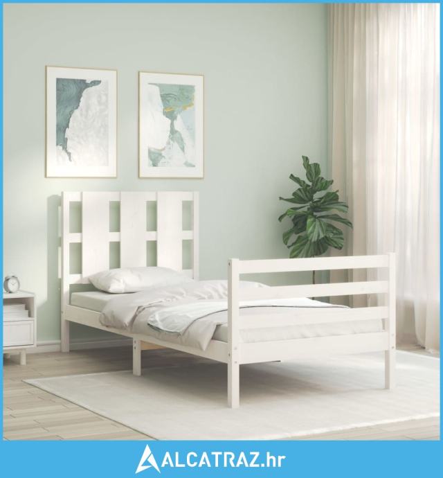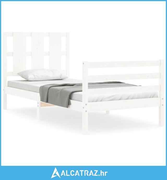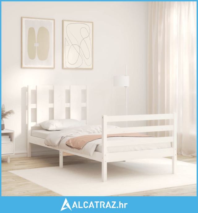Okvir kreveta s uzglavljem bijeli 90 x 200 cm od masivnog drva - NOVO