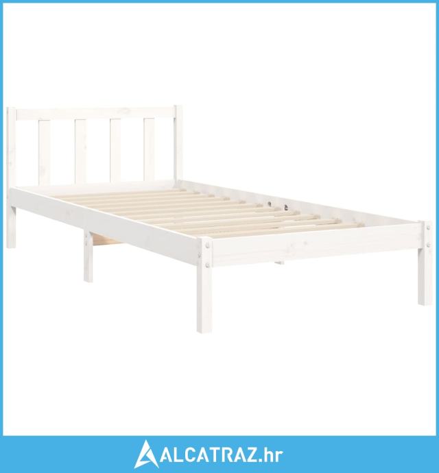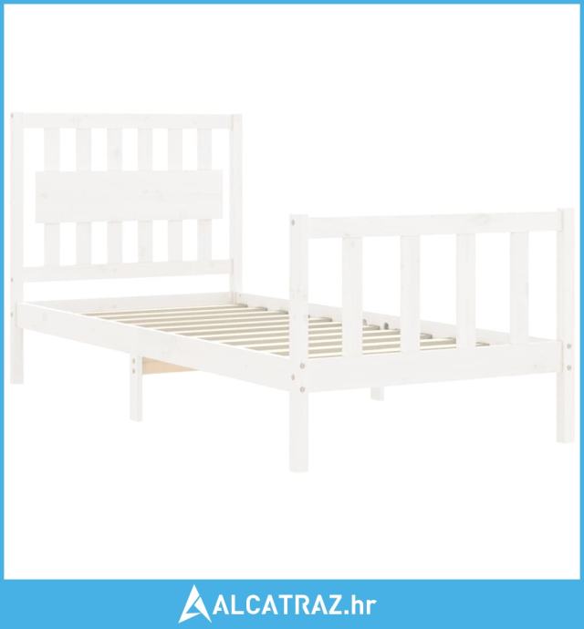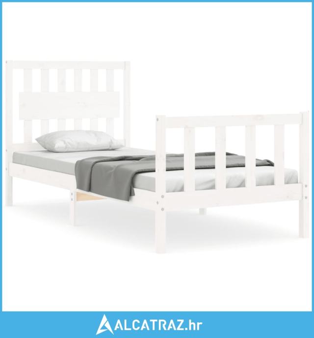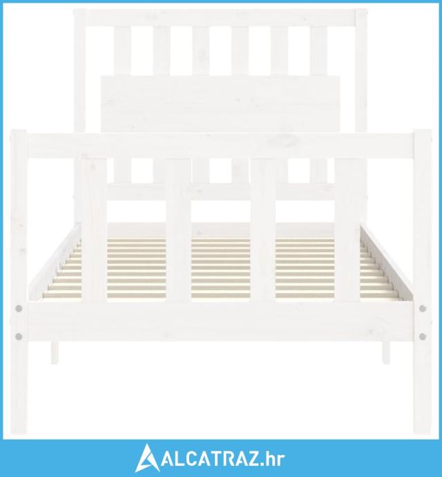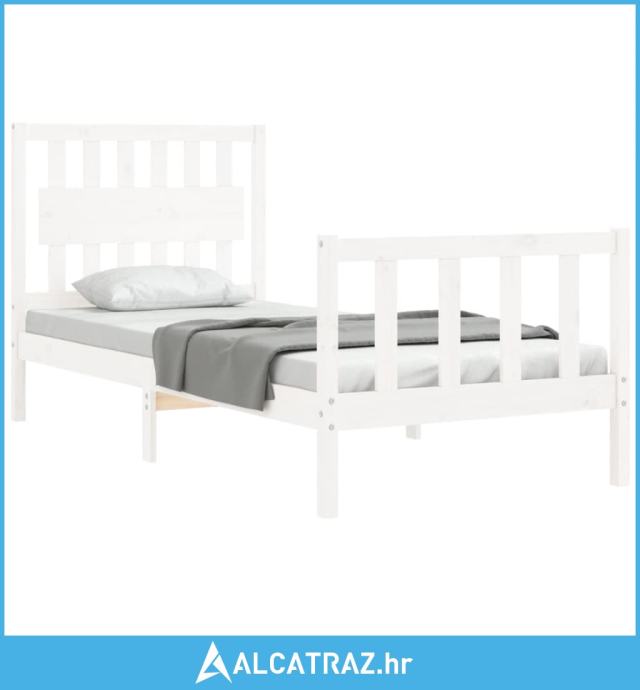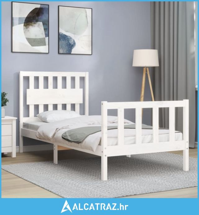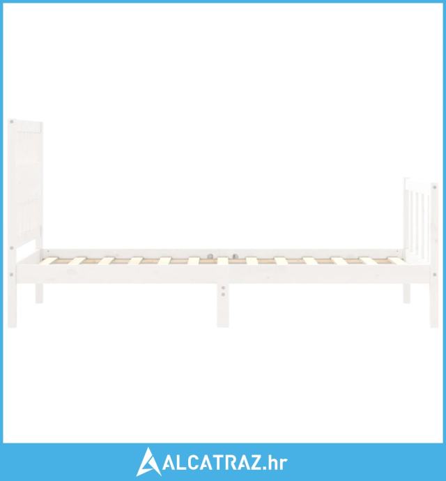 Okvir kreveta s uzglavljem bijeli za jednu osobu masivno drvo - NOVO
