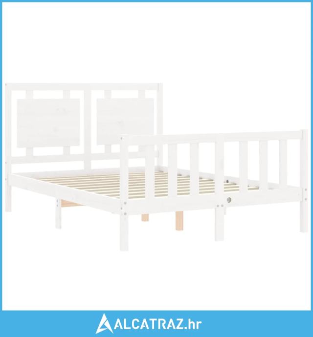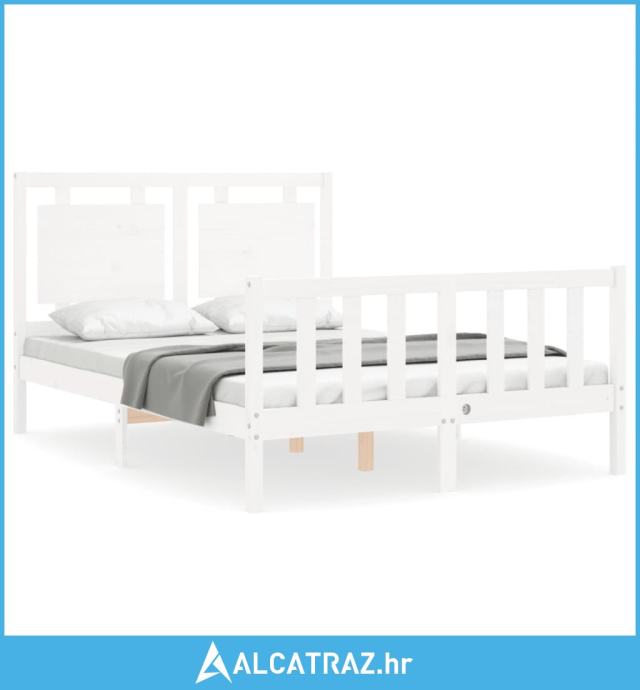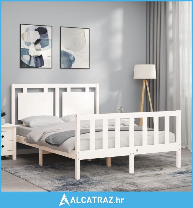 Okvir kreveta s uzglavljem bijeli mali bračni masivno drvo - NOVO