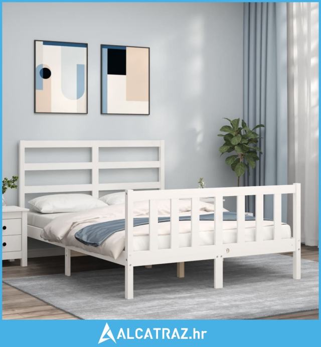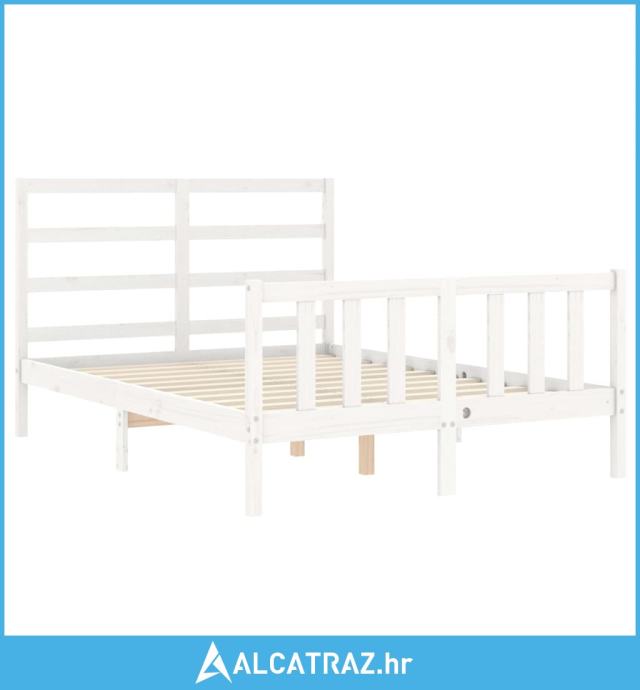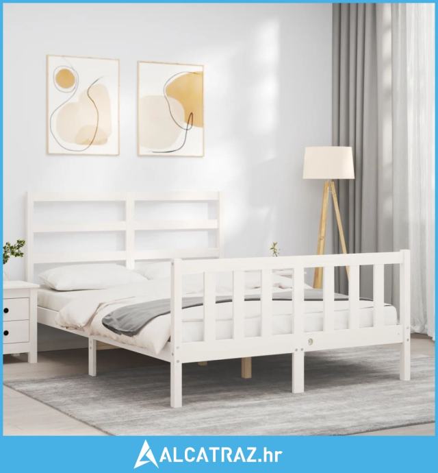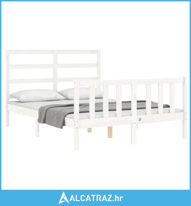 Okvir kreveta s uzglavljem bijeli mali bračni masivno drvo - NOVO