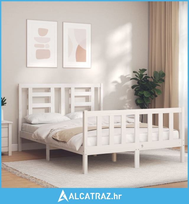 Okvir kreveta s uzglavljem bijeli mali bračni masivno drvo - NOVO