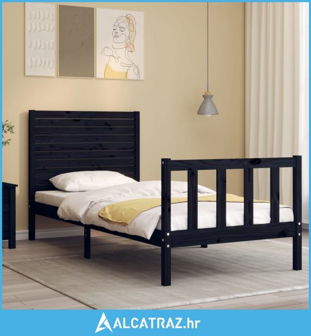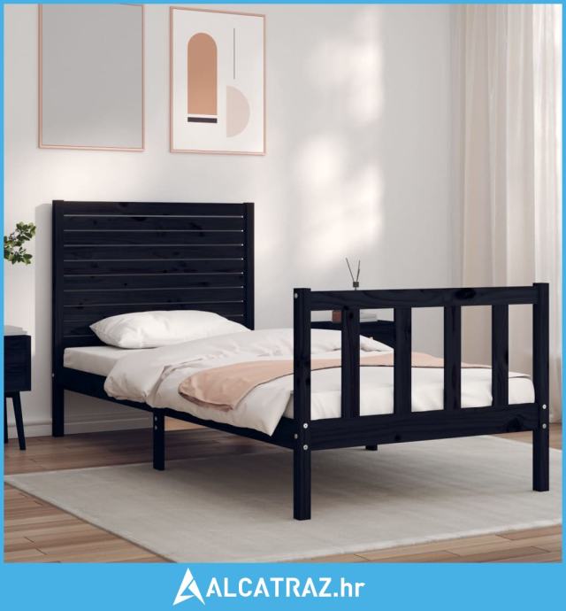 Okvir kreveta s uzglavljem crni 2FT6 jednokrevetni masivno drvo - NOVO