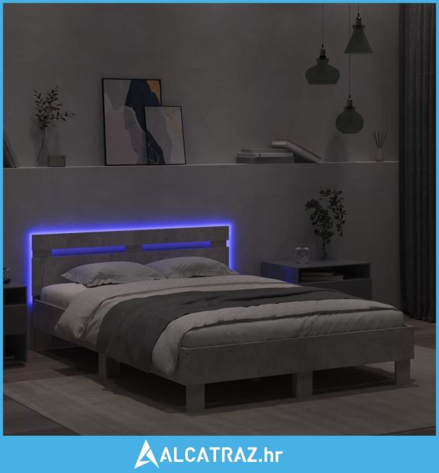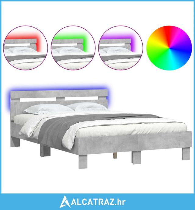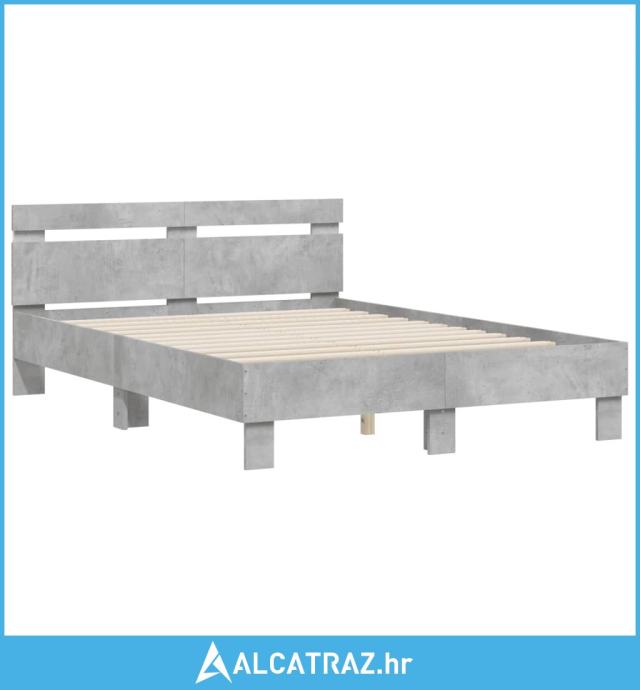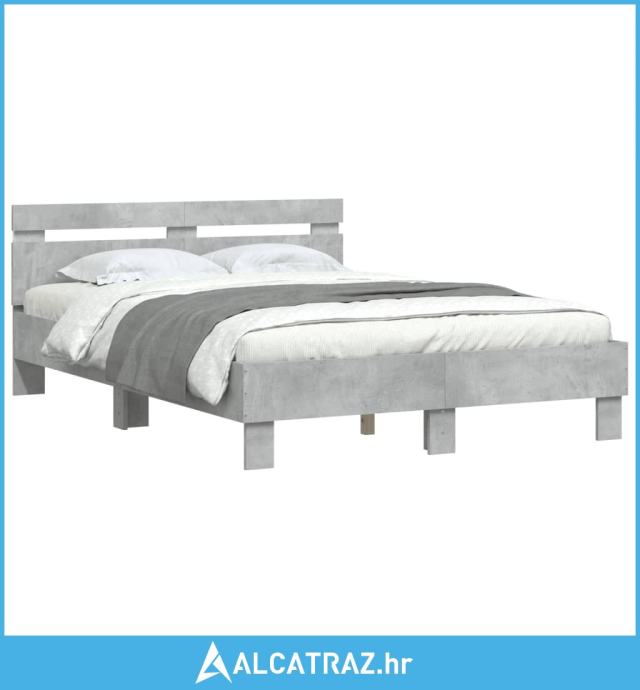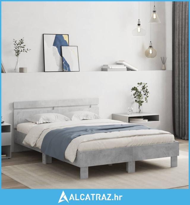 Okvir kreveta s uzglavljem LED siva boja betona 120x190 cm - NOVO