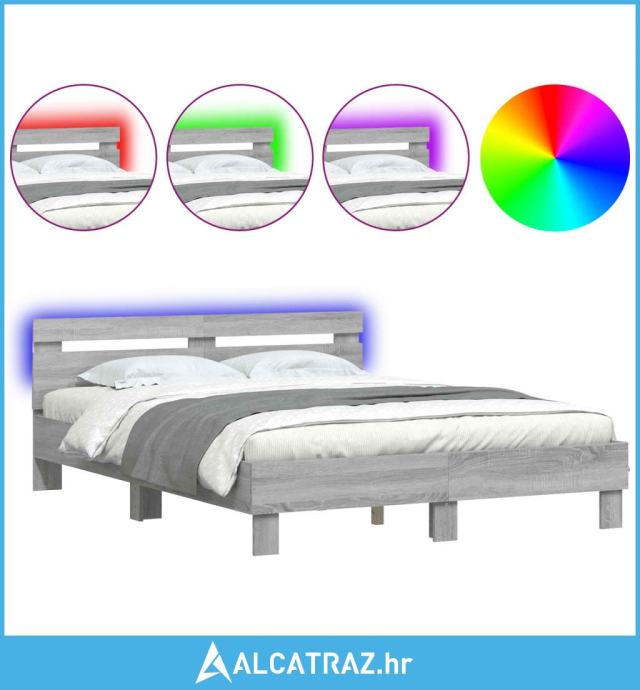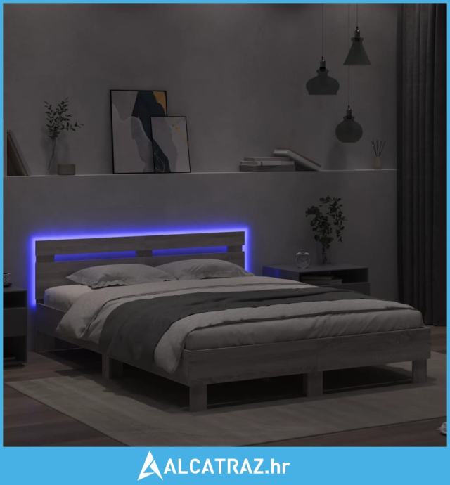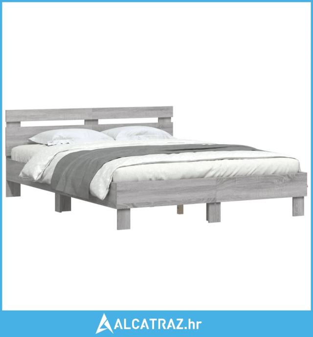 Okvir kreveta s uzglavljem LED siva boja hrasta 140x200 cm - NOVO