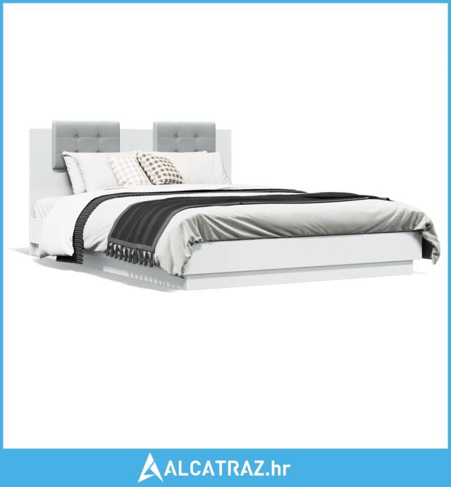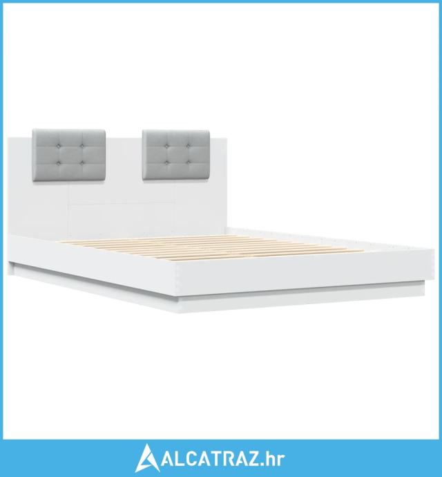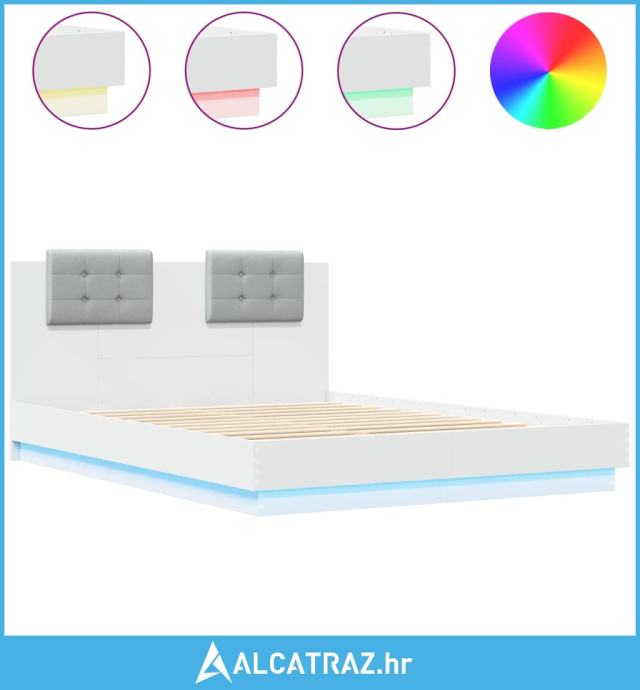 Okvir kreveta s uzglavljem i LED svjetlima bijeli 140 x 200 cm - NOVO