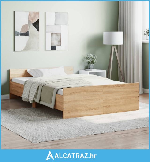 Okvir kreveta s uzglavljem i podnožjem boja hrasta 120x190 cm - NOVO