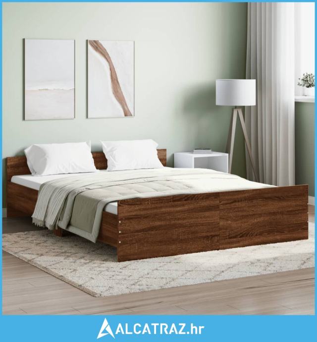 Okvir kreveta s uzglavljem i podnožjem boja hrasta 140x200 cm - NOVO