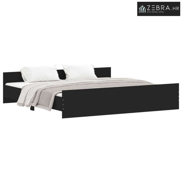 Okvir kreveta s uzglavljem i podnožjem crni 200 x 200 cm - Crna 200 x