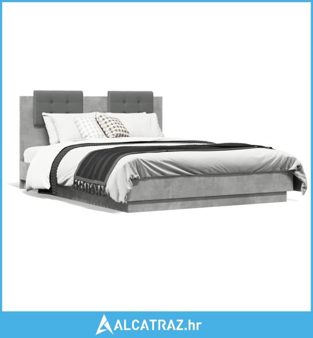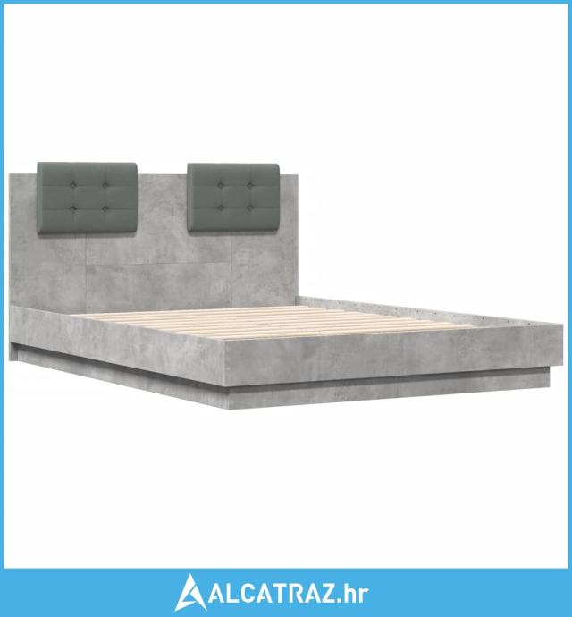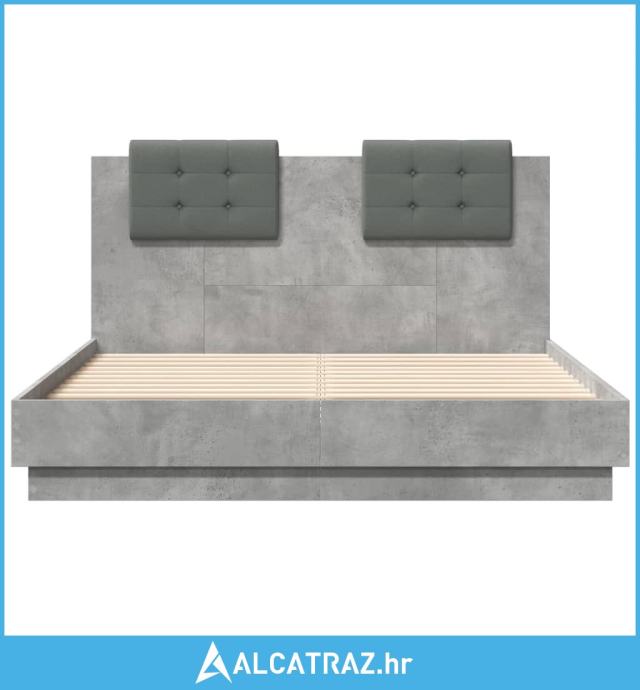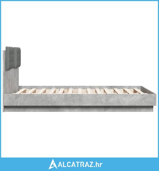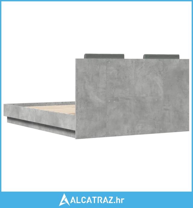 Okvir kreveta s uzglavljem siva boja betona 120x190 cm drveni - NOVO