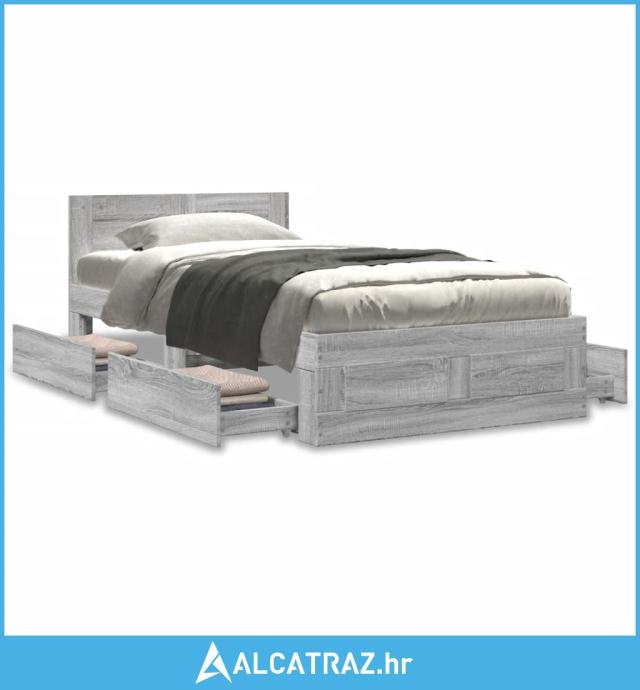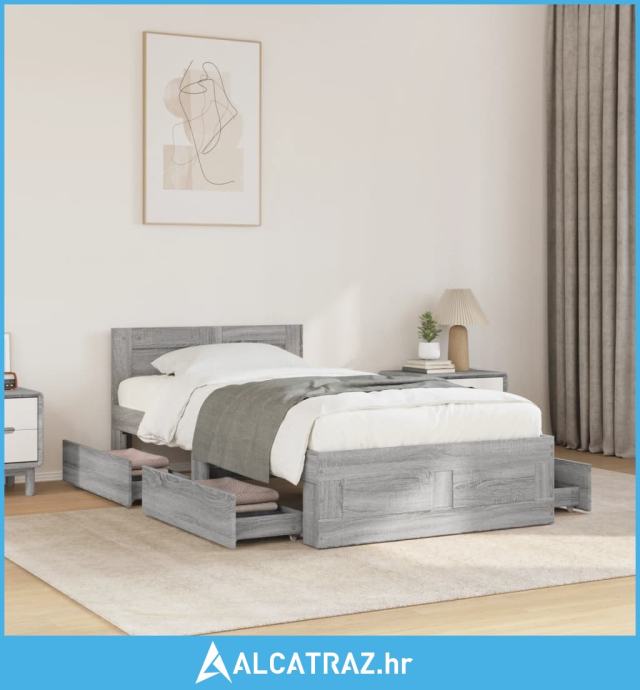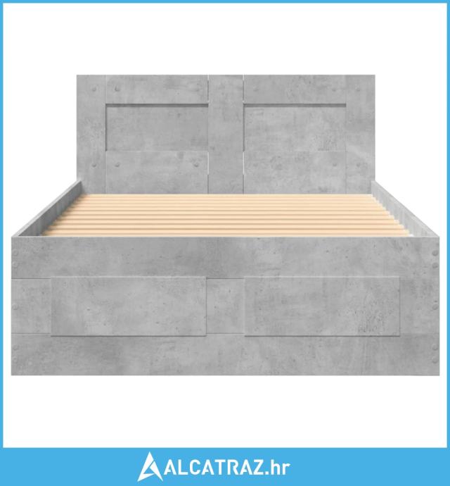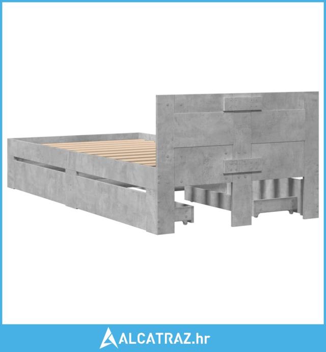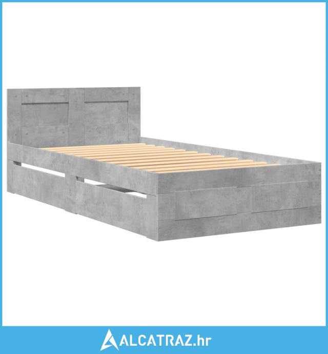 Okvir kreveta s uzglavljem siva boja betona 90x200 cm drveni - NOVO