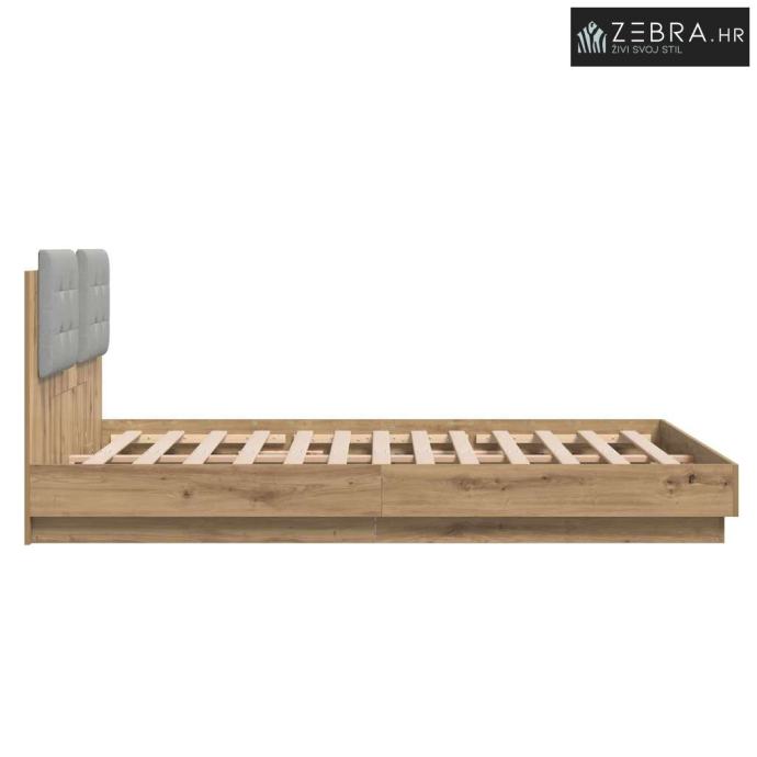 Okvir od konstruiranog drveta: Ovaj krevet je napravljen od konstruiranog drveta, izdržljivog i lijepe završne obrade. To osigurava robusnost i lijep izgled koji traje, pružajući stabilnu podršku za miran san.