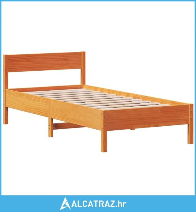 Okvir kreveta s uzglavljem voštano smeđi 100x200 cm od borovine - NOVO