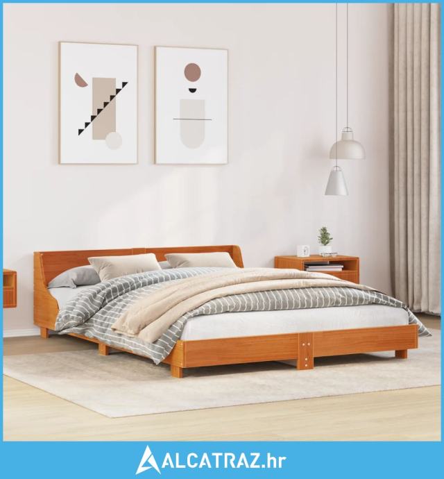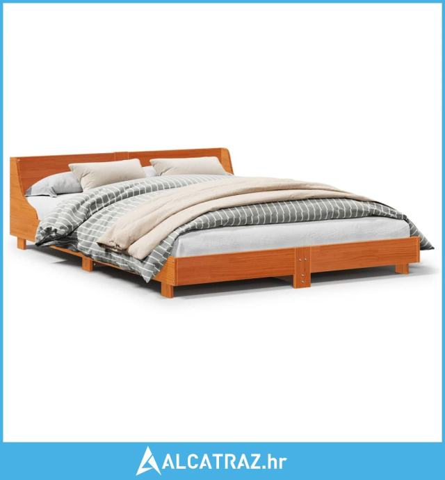 Okvir kreveta s uzglavljem voštano smeđi 140x200 cm od borovine - NOVO