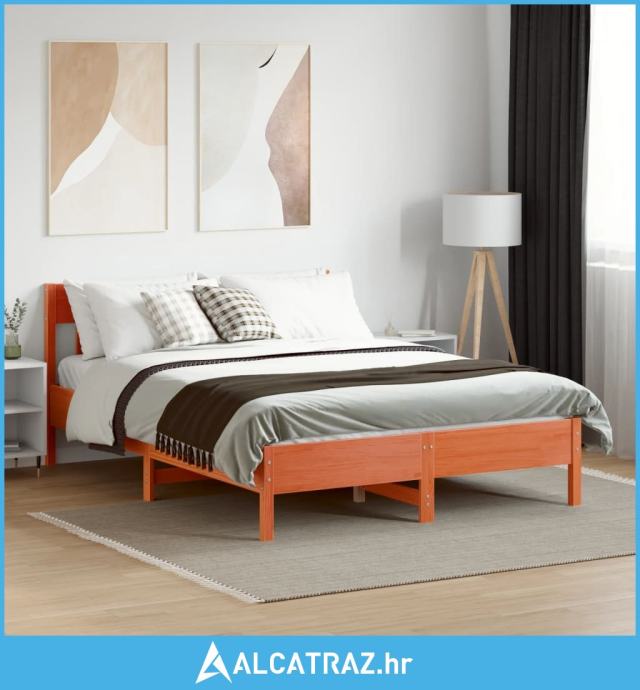 Okvir kreveta s uzglavljem voštano smeđi 140x200 cm od borovine - NOVO