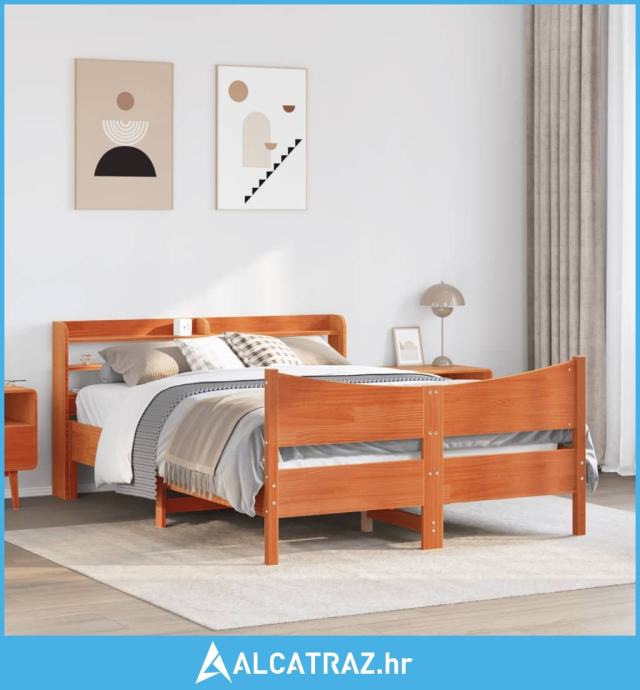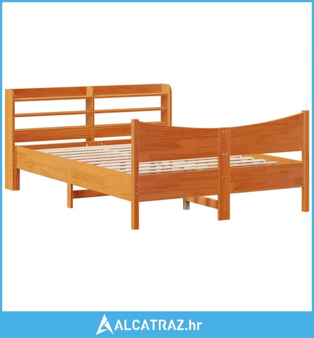 Okvir kreveta s uzglavljem voštano smeđi 140x200 cm od borovine - NOVO