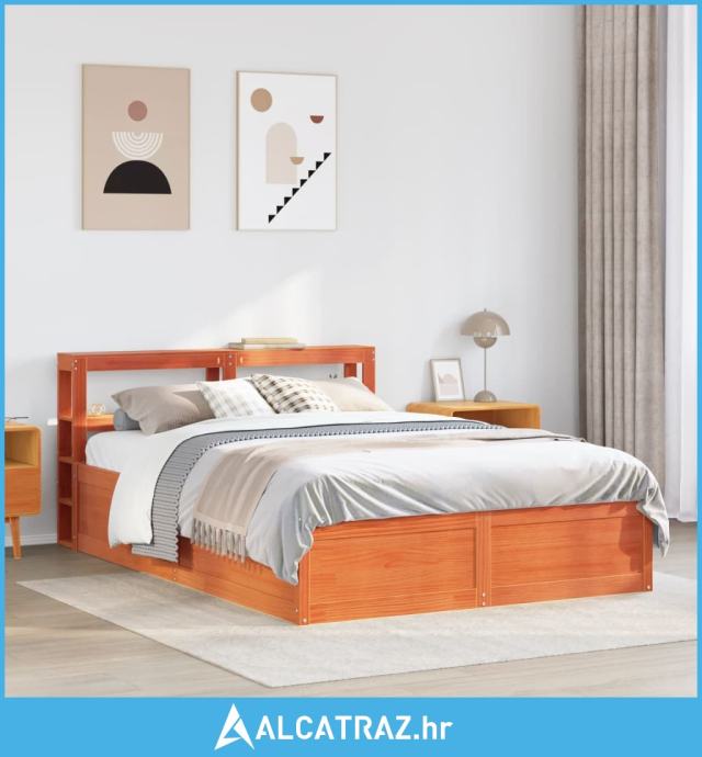 Okvir kreveta s uzglavljem voštano smeđi 140x200 cm od borovine - NOVO
