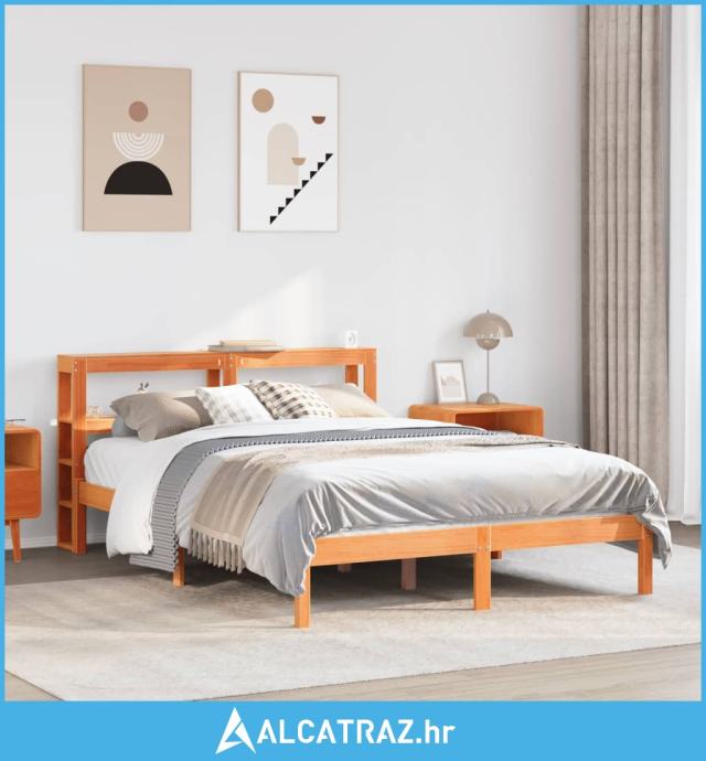 Okvir kreveta s uzglavljem voštano smeđi 140x200 cm od borovine - NOVO