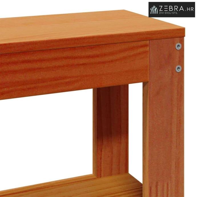 Masivna borovina: Masivna borovina prekrasan je prirodni materijal. Borovina ima ravne godove, a čvorovi daju materijalu njegov prepoznatljivi, rustični izgled. Napravljen od masivne borovine, ovaj je krevet čvrst i izdržljiv.