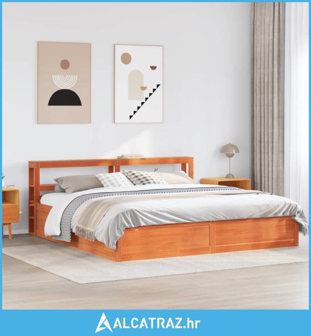 Okvir kreveta s uzglavljem voštano smeđi 180x200 cm od borovine - NOVO
