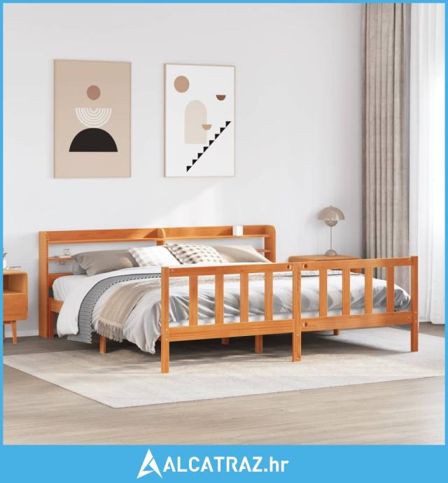 Okvir kreveta s uzglavljem voštano smeđi 180x200 cm od borovine - NOVO