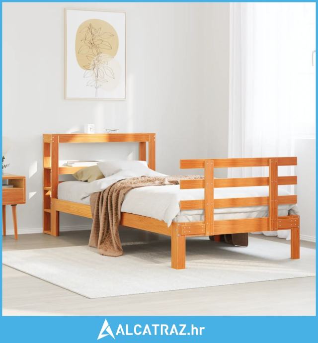Okvir kreveta s uzglavljem voštano smeđi 75x190 cm od borovine - NOVO