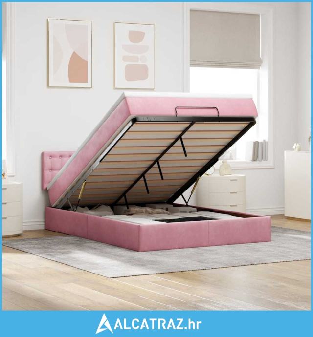 Otomanski krevet s madracem&LED ružičasti 140x190 cm baršunasti - NOVO