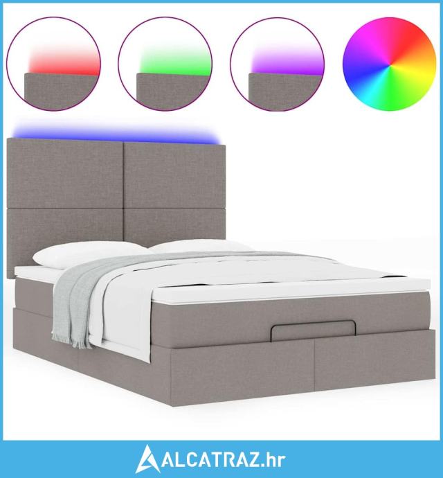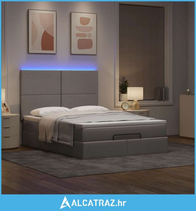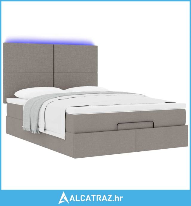 Otomanski krevet s madracem i LED smeđesivi 140x200 cm tkanine - NOVO